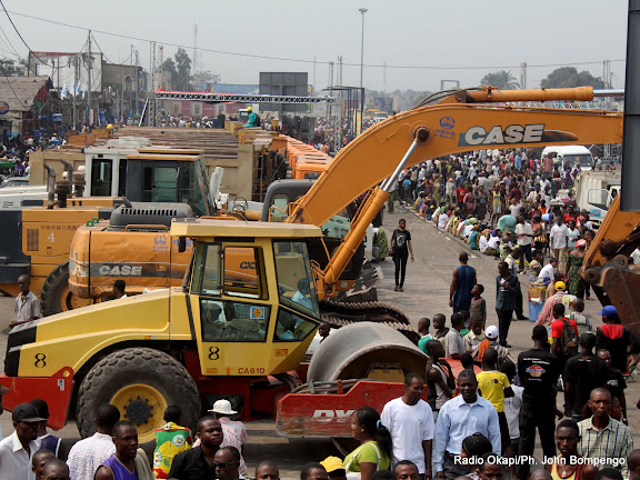| Quelques Kinois entourent les engins ce 06/07/2011 à Kinshasa, lors du lancement des travaux de modernisation du boulevard Lumumba par le président Joseph Kabila. Radio Okapi/ Ph. John Bompengo |