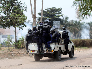 La Police pourchassant les militants de l’UDPS le 6/9/2011 à Kinshasa-Limeté.