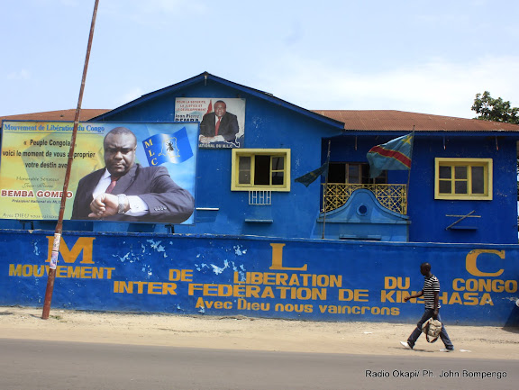 Un homme passe devant le siège du MLC ce 17/03/2011 à Kinshasa.