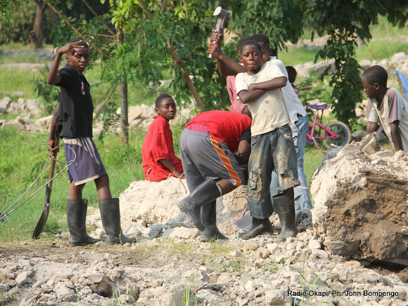 Un reporter de Radio Okapi a visité ce mardi une carrière des pierres au quartier Minoza dans la commune de Ngaliema à Kinshasa. Dans ce site, enfants et adultes cassent des blocs de pierres pour les revendre ensuite. Ces morceaux de pierre sont utilisés dans la construction des bâtiments.