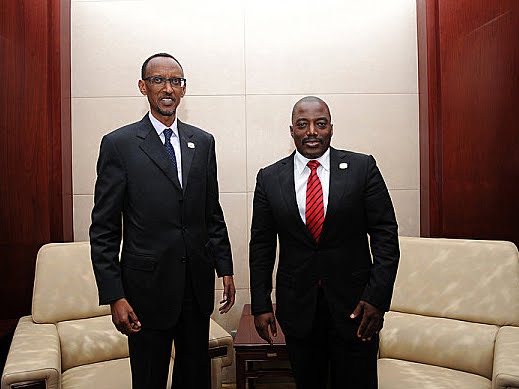De gauche à droite: Le présidents du Rwanda, Paul Kagame et celui de la RDC,
