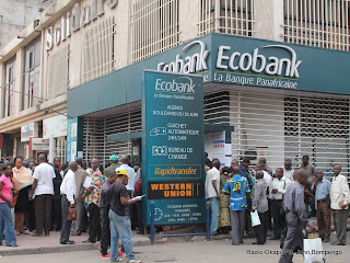 la paie du mois devant une banque à Kinshasa.