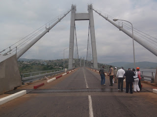 | La délégation de l'OEBK sur le Pont Maréchal à Matadi (Bas-Congo). Photo Radio Okapi. |