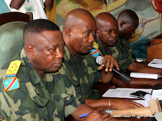 | Les juges militaires membres de la Cour militaire ce 9/05/2011 à Kinshasa, lors du procès Chebeya à la prison centrale de Makala. Radio Okapi/ Ph. John Bompengo |