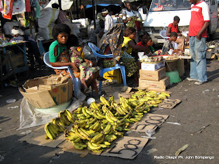 | Une vue des vendeuses des fruits au marché central de Kinshasa, ce 19/03/2011. Des fruits étalés de par le sol sur la chaussée principale qui traverse le marché. Radio Okapi/ Ph. John Bompengo |