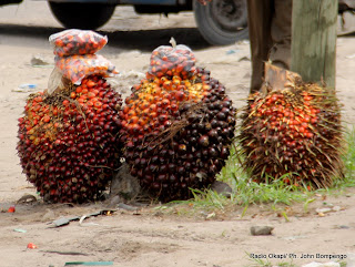 | Des régimes de noix de palme le 14/05/2012 sur une des avenues de Kinshasa. Radio Okapi/ Ph. John Bompengo |