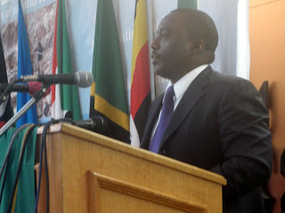 | Le président Joseph Kabila à la tribune du CIRGL à Lusaka en Zambie, le 15 décembre 2010. |