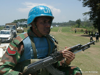 | Un casque bleu à l’Est de la RDC en janvier 2003. Photo Don John Bompengo |