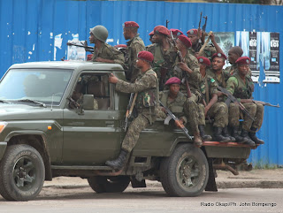 | Des éléments de la garde républicaine en patrouille non loin de la RTNC, la télévision publique attaquée le 30/12/2013 dans la matinée des jeunes gens armés. Radio Okapi/Ph. John Bompengo |