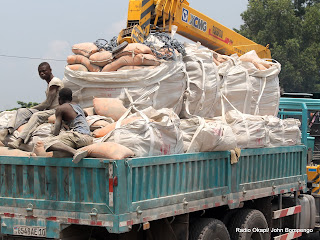 | Transport de sacs du ciment pour les travaux de réfections des routes par des entreprises chinoise le 27/02/2013 à Kinshasa. Radio Okapi/Ph. John Bompengo |